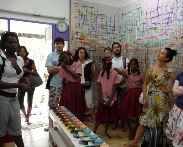 On the other side of town we visited another school – Udavi school – which provides education to children from surrounding villages at very low cost. Our visit to this school was a great experience. Eric, a history-geography teacher there, had a group of his students guide us around school. These are all young Tamil children, there english was very strong and the willingness and their wanting to learn was visible in every action they took and word they spoke. These are children from surrounding villages who some before coming to the Udavi school were abused by teachers and definitly limited to their learning experience. Here at Udavi the children demonstrate an ownership of the school, by the school’s cleanliness, and especially by how they presented the programs to us visitors. Like many other schools in and around Auroville the classes are definitely not your standard classrooms, yet learning is constant, Udavi in particular prepares the students to pass the national standard tests after the 10th standard (grade). The members of faculty are continually adapting to the students making changes in their teaching styles to accommodate the learner; as a teacher at the Udavi school you are as much a teacher as you are a learner. Each child has his or her own level of motiviation that varies with subjects, therefore the class is often designed to focus on what the learner wants to learn, resulting in greater success, retention and continual learning; this does not mean it is playtime all day, because the students have greater control over what they learn, they individually are more motivated. Udavi offers classes that educate the students both on an academic scale as well as vocational. Learning is combined in a variety of forms, learning through physical activity and sport, visual and performing arts, manual work… If you’ve studied Garner’s theory of multiple intelligences: Linguistic words and language/ Logical-Mathematical logic and numbers/ Musical music, sound, rhythm/ Bodily-Kinesthetic body movement control/ Spatial-Visual images and space/ Interpersonal other people’s feelings/ Intrapersonal self-awareness. (Find out more about Gardner’s theory here) You could claim the Udavi school follows Garner, it provides a variety of tools to help each student learn the best they can and how they learn best.