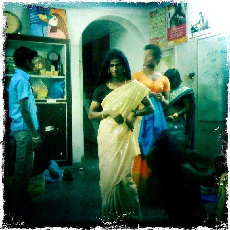 This also serves as an important opportunity for these particular aravanis to increase awareness and visibility. They are all members of a community organization called Sahodaran Society, a sexual health clinic and community center for the LGBT population of Pondicherry. It is the only safe space and meeting place for this portion of the population in the area.