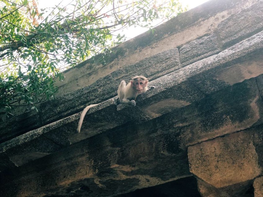Published January 21, 2019 at 1080 × 810 in The Gang Goes to Gingee A bonnet macaque greeted us at the gate to Gingee Fort. Share this: Click to email a link to a friend (Opens in new window) Email Click to share on Facebook (Opens in new window) Facebook Click to share on X (Opens in new window) X Like Loading...