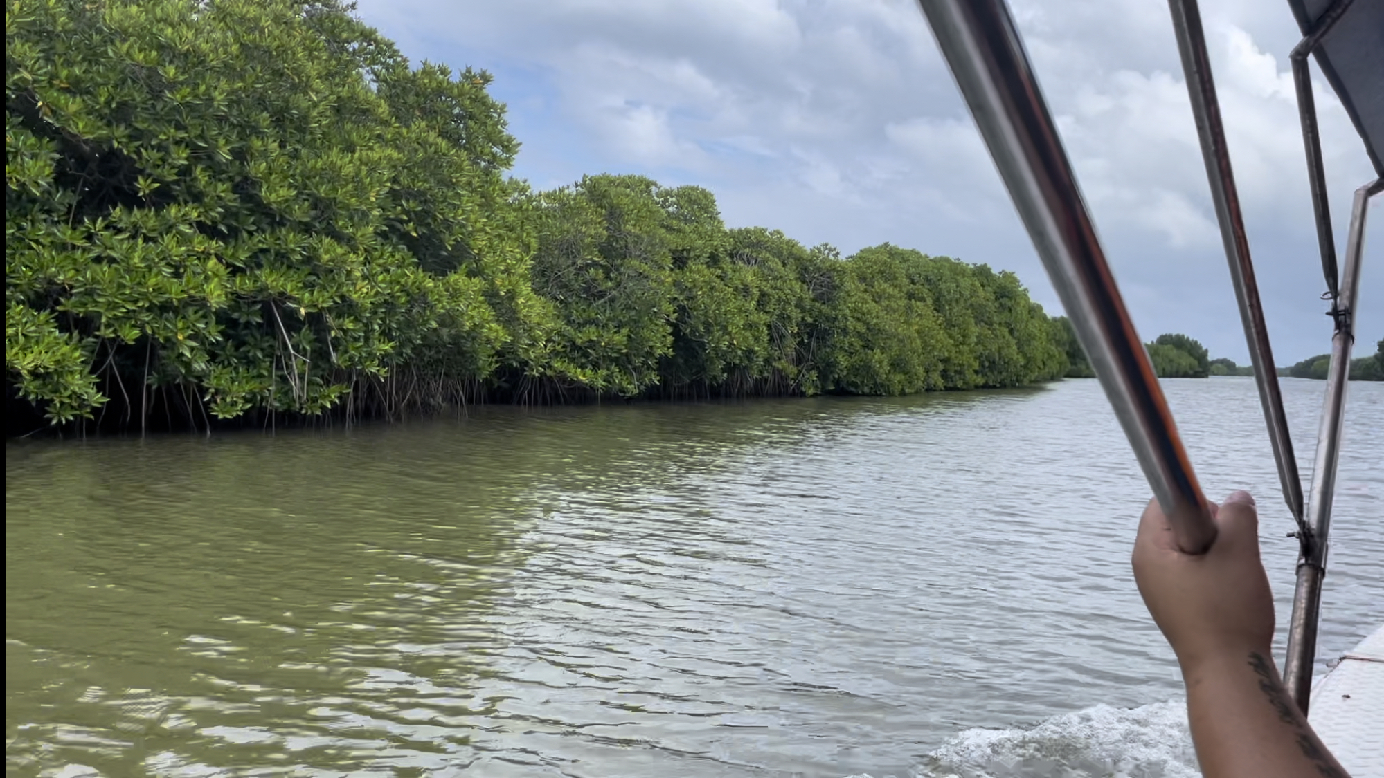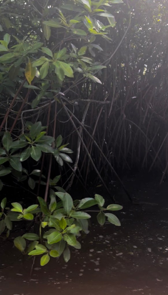 They also help stabilize the ecosystem year round by mitigating coastline erosion. Their roots, again, help bind and build soil below the ground. Above the earth, they slow down water flow and allow sediment deposits to increase. In a simple scientific process, mangrove root systems filter nitrates, phospates, and other pollutants from the water as it passes by. By improving the water quality at the start of the river, the mangroves help ensure all other ecosystems downriver have clean, healthy water.