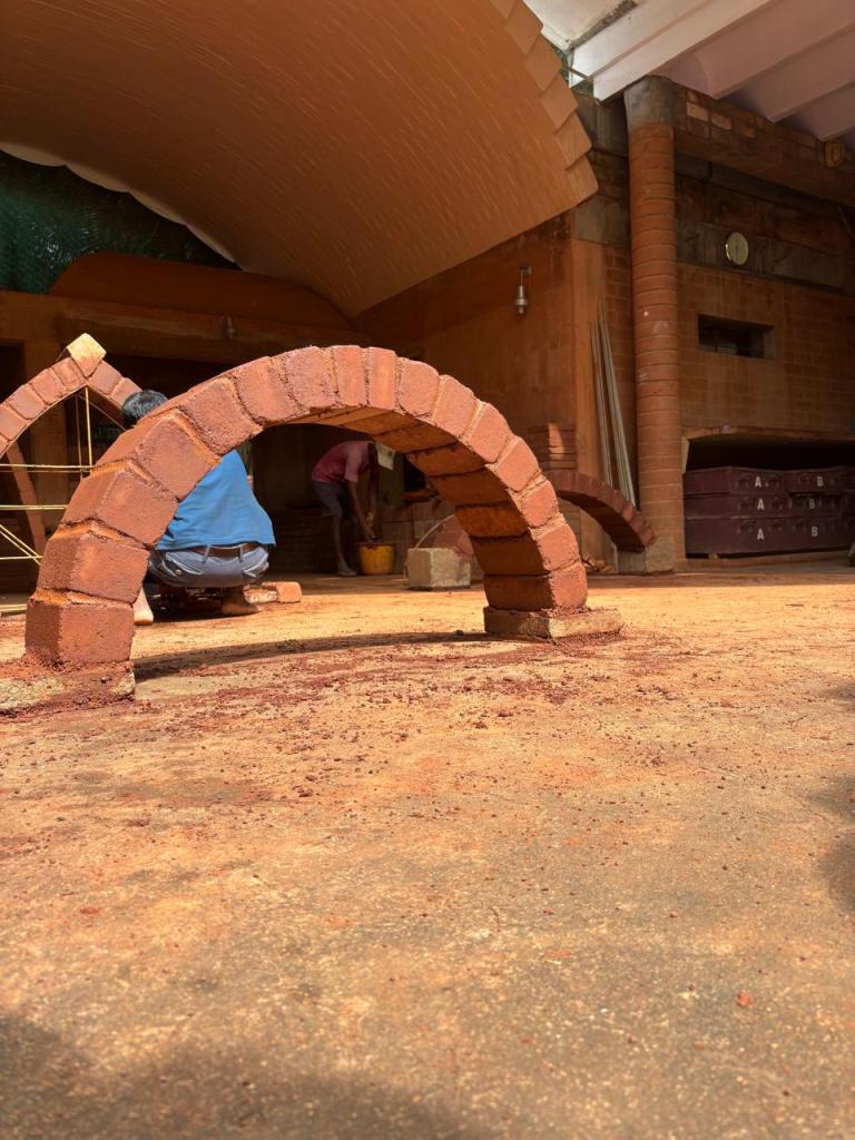 To adapt to the ever-changing, interconnected global landscape and alleviate the threats to loss of cultural identity, Mohanam has centered itself as a hub for Tamil Nadu arts, culture and education. During our visit, AUP students were able to say hello to the children learning yoga and a traditional South Indian dance from an experienced instructor. We visited their shop and admired the handcrafted products made by local women entrepreneurs. Some of us played a few notes on traditional percussion instruments made from materials found in the bioregion. We enjoyed a stroll through the peaceful bamboo forest garden.