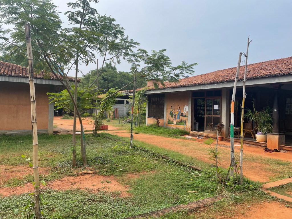 As I walk back outside the chairs are being put back in order and everyone is getting settled mostly male and female partners together intermingled. The man that I was introduced to before sits in front of the gathering and speaks to them in Tamil he asks a question and two males respond a couple minutes later a woman responds, a dialogue starts and everyone laughs. All seem to be avidly paying attention.